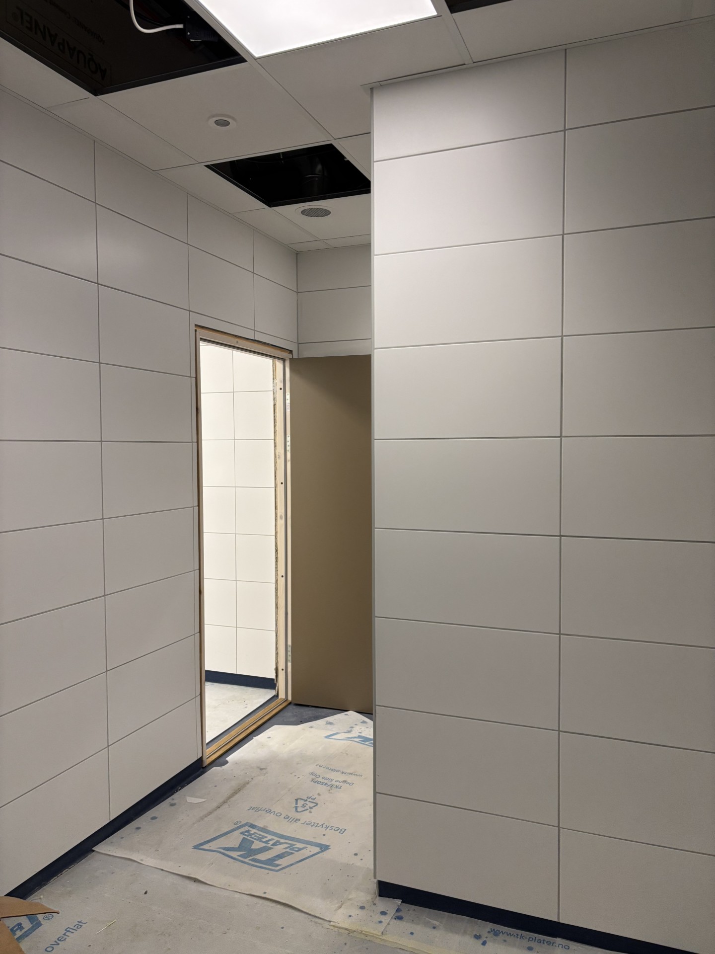 På tømmer fronten så begynner det å minske med angrepspunkt, ift. da produksjonen var på topp. Per nå så er det 6 tømrere på prosjektet, og neste uke minsker det med én mann. Det går mye i det samme inne, det er lukking av himling, listing og foringer, siste innsetting av dører, og på utebanen har de jobbet med sykkelboder.